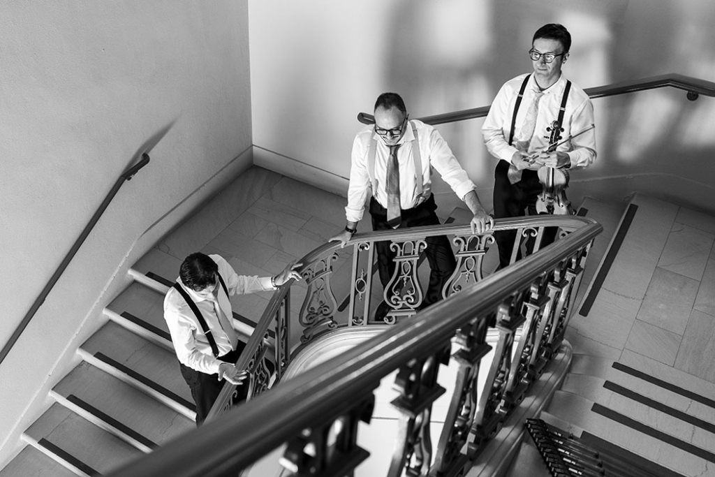 Eraser Studio recently collaborated with the acclaimed Iranian music group Far-C Band for a striking new photo shoot set against the architectural elegance of Pasadena City Hall. Known for blending cultural richness with contemporary sound, Far-C Band—featuring Ehsan Karami, Grammy Award–winning musician Hamid Saeidi, and Navid Kandelousi—stepped into a bold new visual era through this creative partnership.